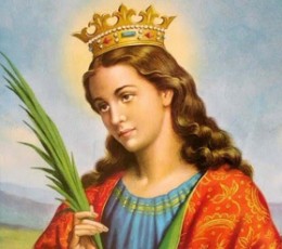 Descrita como uma jovem de dezoito anos, cristã, de rara beleza, era filha do rei Costus, de Alexandria, no Egito. Dizem que era uma mulher muita culta e modesta. Destacava pela inteligência entre as mulheres de sua época.
